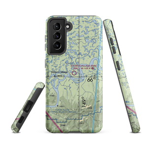 VFR sectional maps are instantly recognizable. They are our country as seen from the air, dotted with landmarks by day and expected lighting by night. This is your opportunity to carry a momento of the area around your favorite airport with your personal piece of the sectional at Stevens Village Airport (SVS) in Alaska.