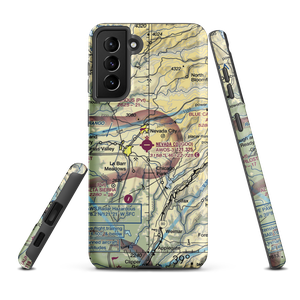 VFR sectional maps are instantly recognizable. They are our country as seen from the air, dotted with landmarks by day and expected lighting by night. This is your opportunity to carry a momento of the area around your favorite airport with your personal piece of the sectional at Nevada County Airport (KGOO) in California.