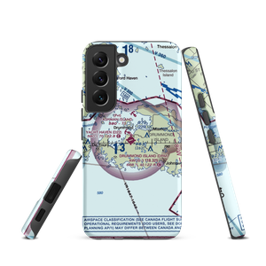 VFR sectional maps are instantly recognizable. They are our country as seen from the air, dotted with landmarks by day and expected lighting by night. This is your opportunity to carry a momento of the area around your favorite airport with your personal piece of the sectional at Drummond Island Airport (KDRM) in Michigan.