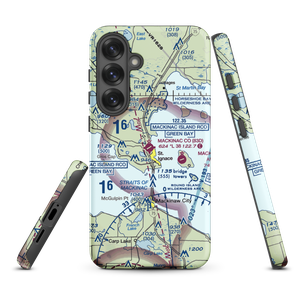VFR sectional maps are instantly recognizable. They are our country as seen from the air, dotted with landmarks by day and expected lighting by night. This is your opportunity to carry a momento of the area around your favorite airport with your personal piece of the sectional at Mackinac County Airport (K83D) in Michigan.