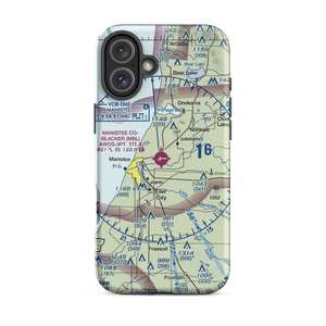 VFR sectional maps are instantly recognizable. They are our country as seen from the air, dotted with landmarks by day and expected lighting by night. This is your opportunity to carry a momento of the area around your favorite airport with your personal piece of the sectional at Manistee Co Blacker Airport (KMBL) in Michigan.