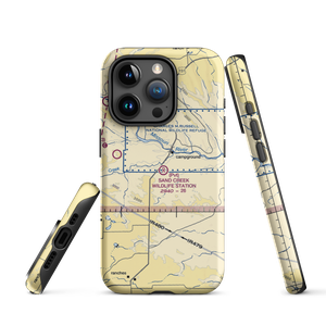 VFR sectional maps are instantly recognizable. They are our country as seen from the air, dotted with landmarks by day and expected lighting by night. This is your opportunity to carry a momento of the area around your favorite airport with your personal piece of the sectional at Sand Creek Wildlife Station Airport (MT79) in Montana.