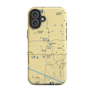 VFR sectional maps are instantly recognizable. They are our country as seen from the air, dotted with landmarks by day and expected lighting by night. This is your opportunity to carry a momento of the area around your favorite airport with your personal piece of the sectional at Arthur Municipal Airport (38V) in Nebraska.
