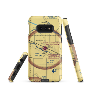 VFR sectional maps are instantly recognizable. They are our country as seen from the air, dotted with landmarks by day and expected lighting by night. This is your opportunity to carry a momento of the area around your favorite airport with your personal piece of the sectional at Garden County Airport/King Rhiley Field (KOKS) in Nebraska.